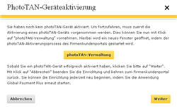 The message box in step 2 will open if you have not yet acti-vated photoTAN device.